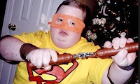 Se dice que el origen de sus poderes se debe a que le mordió un cani radactivo, pero lo cierto es que su madre comió demasiadas pizzas durante el embarazo y se le escogorció el cromosoma 21.